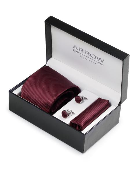 A perfect gift for the man of style, this accessory set comprising a silky microfiber tie, matching cufflinks and a silk handkerchief, is every debonair charmer's dream.