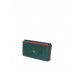 Teal wallet with single fold crafted from synthetic leather with stitch overlays and branding on the front