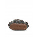 Bellow pocket in front with flap that has mock buckles and magnetic closure