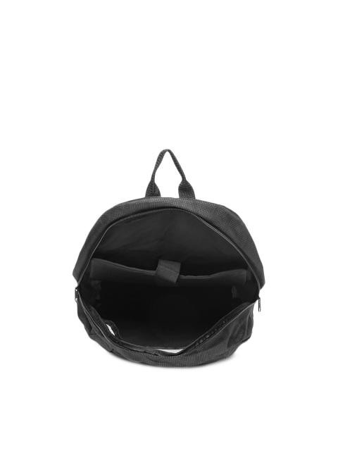 Black backpack with one main zipped compartment that has a padded laptop holder and a Velcro closure
