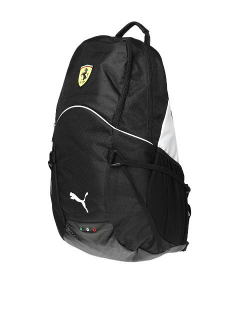 Black backpack with one main two way zipped compartment, a laptop compatment with a velcro flap