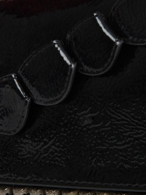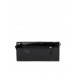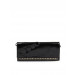 Black clutch with a flap in front having a magnetic button closure