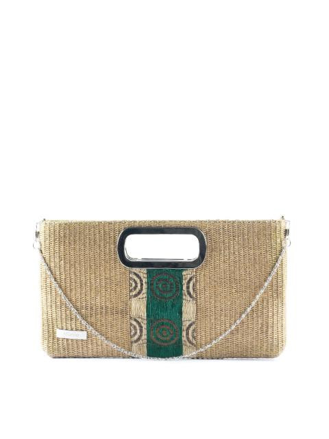 Specialising in jute, and crafted by skilled Indian craftsmen, murcia clutches use the finest materials and hardware in their products. Metallics are a hot new-season bag trend, and this clutch is a classic example of the style. Carry this ethnically styled piece with the cut-out handle or tuck it under your arm and style it with a striking richly coloured salwar suit for maximum impact. Accessorise with similar tones.