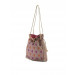 Magenta and gold Potli-style purse with embroidered design and a drawstring closure