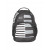 Brand logo in silver print all over the front body of the bag, with brand name and logo embroidered on the top