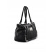 Bridged pattern in front with metallic embelishment of brand name Metallic embelishments nd stud detailing on the lower portion of the bag