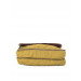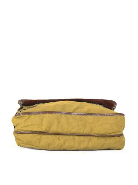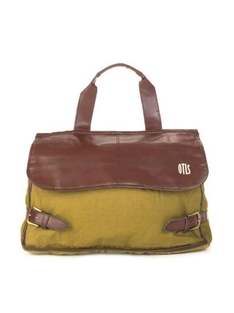 Khaki and brown, fabric and synthetic leather, dual flap sling bag with one main compartment