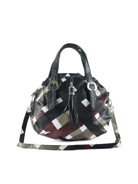 Cute-as-a-button bag in black and maroon from kiara with smart buckles and a fun tassle. Extra roomy and comfortable to carry, the textured leather effect fabric will give a sophisticated look to any outfit.