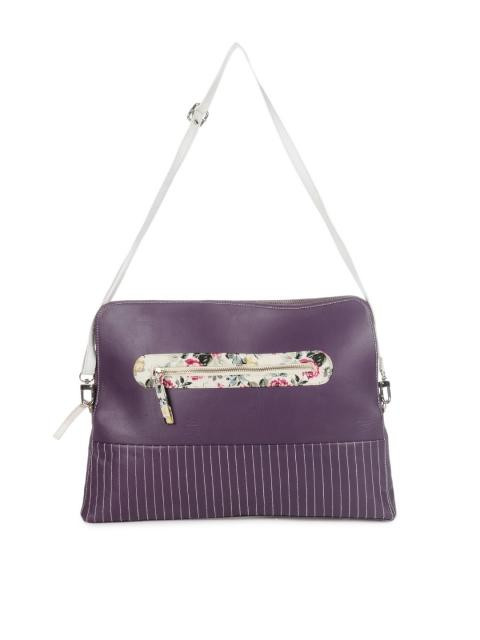 Purple laptop bag with stitch detail amd white floral trims around the front zipper