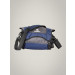 Blue messenger bag, has a flap with a zip pocket across the mouth secured with click clasp closure