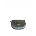 Grey and blue waist pouch, has a flap with a Velcro closure