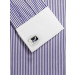 Rectangle cuff links made of steel, with a black enamel top that has a circular enamel design in shades of blue