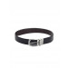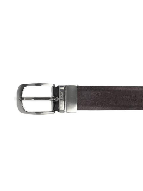 Reversible belt with a silver single-pronged buckle