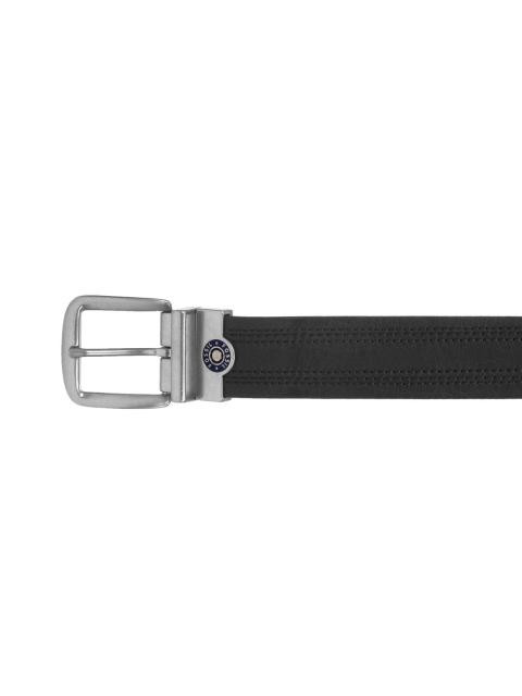 Black reversible belt, with brown on the other side, made of leather and has stitched detailing