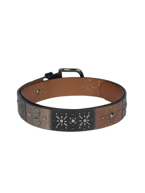 Multi- coloured belt made of leather with metal embellishments and cut- out design all over