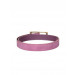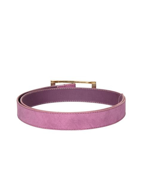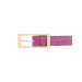 Violet belt with a gold toned tang clasp buckle with a single prong
