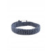 Made of fabric in a braided pattern with leather panels at the buckle and on the tail end for durability and style