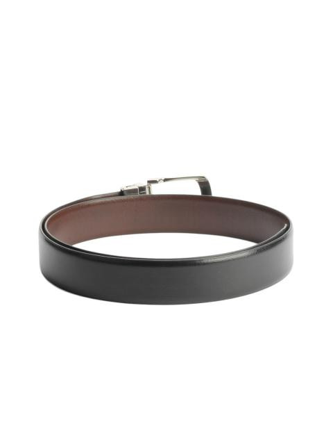 belts crafted from finely woven leather, this black reversible Newhide belt has a refined finish complemented by its smart gunmetal buckle. Newhide leather breathes, regulates temperature to suit the climate, prevents dust penetration and has high ripping resistance that makes it a must-have in your wardrobe!