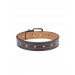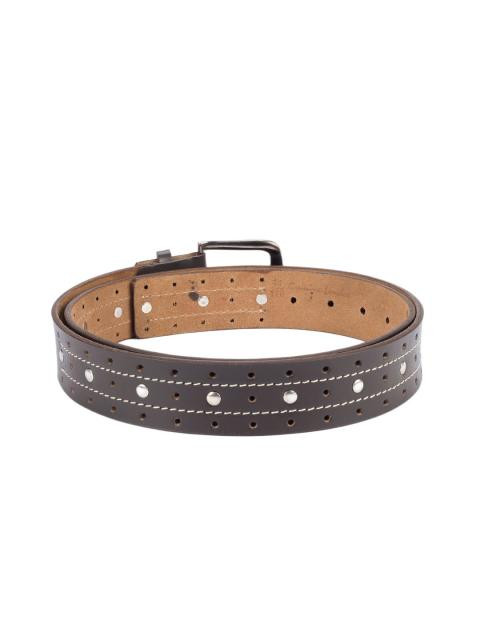 Brown belt with stitch detailing, metallic studs and a hole design for durability and style