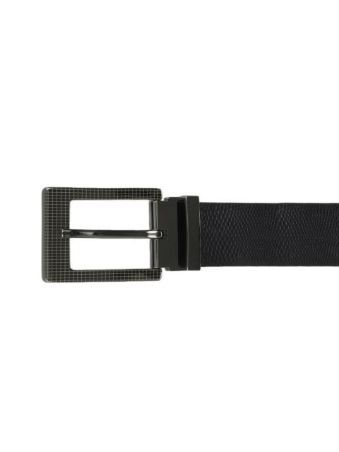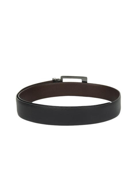 Black and brown textured reversible belt with a tang clasp