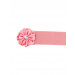 Wide, pink belt that is elasticated with a leather patch that has a fabric flower and crystal design