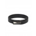 Black textured leatherette belt with a press clasp