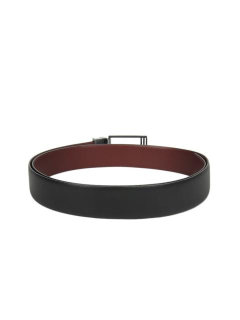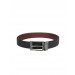 Twist and turn buckle with branding and a fixed belt loop to hold the belt in place