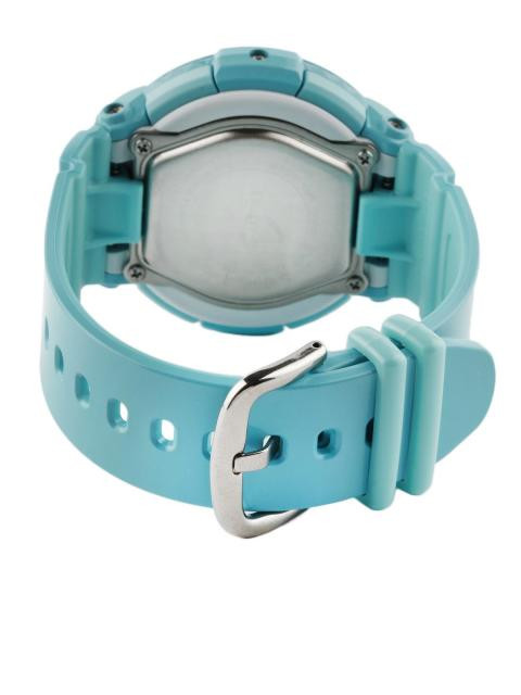 Strap style: Blue, shock-resistant, resin strap secured with a tang clasp