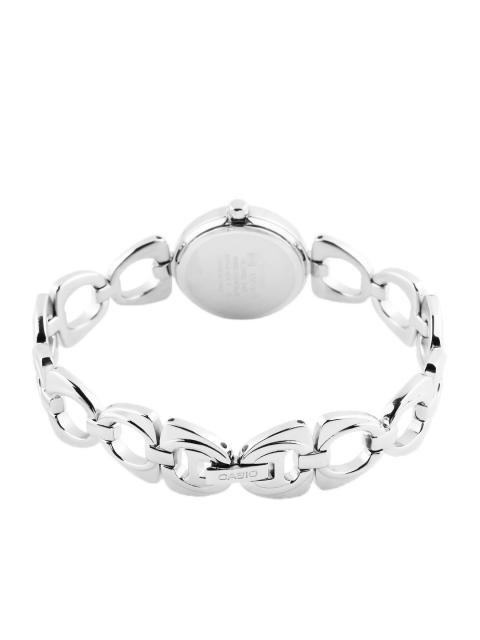 Strap style: Silver-toned bracelet-style strap, secured with a foldover clasp
