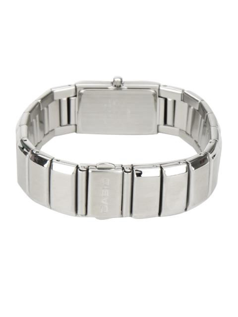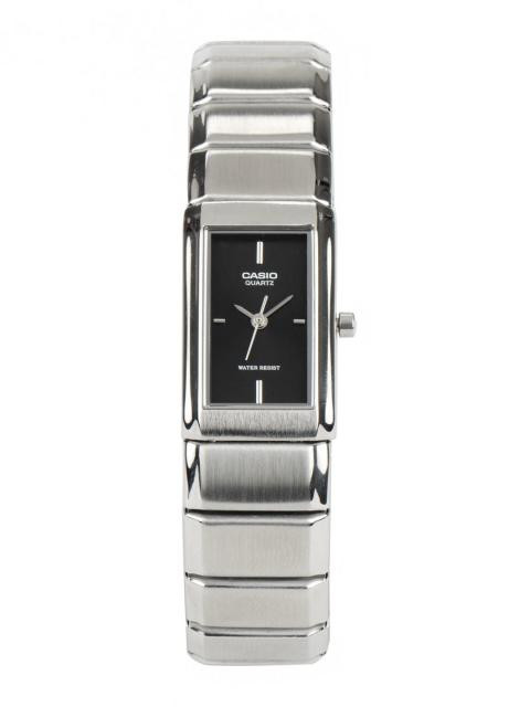 Case style: Analogue watch with a rectangular case and a stainless steel back