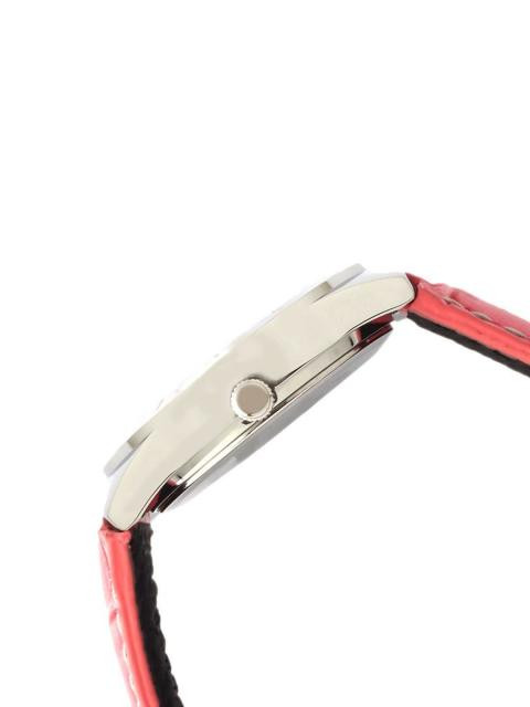 Strap style: Pink genuine leather strap, secured with a tang clasp