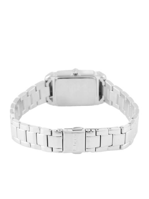 Dial style: Blue dial, silver hands, white stones at the hour marks, diamond shaped design detail