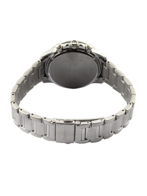 Strap style: Steel-toned metal bracelet-style strap, secured with a foldover and butterfly clasp