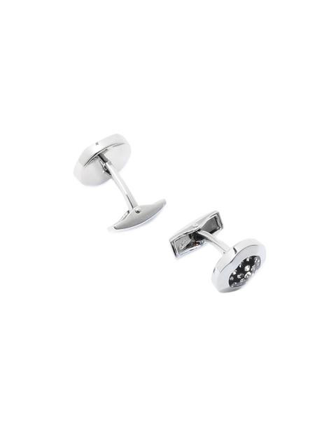 Steel and black coloured, round pair of cuff-links with crystal detail
