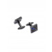 Gunmetal coloured pair of cuff-links, square, with blue crystal detail
