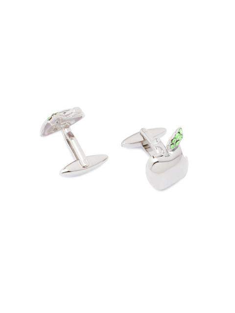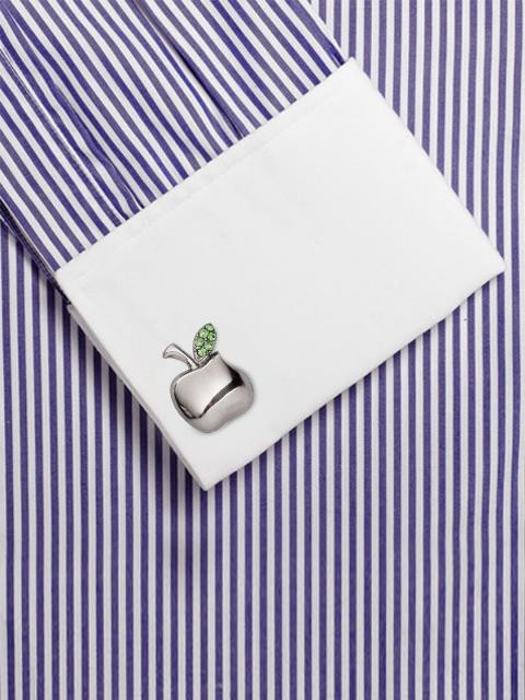 Steel coloured, crystal studded, apple shaped pair of cuff-links