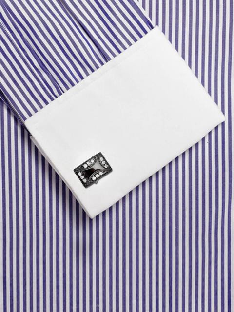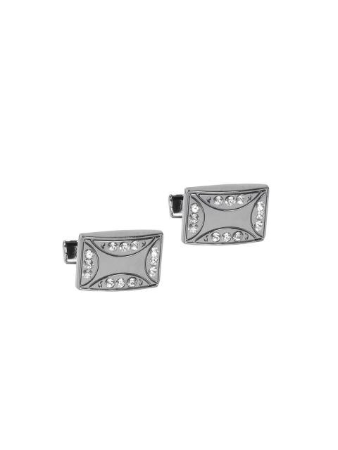Gunmetal coloured pair of cuff-links, rectangular, with crystal detail