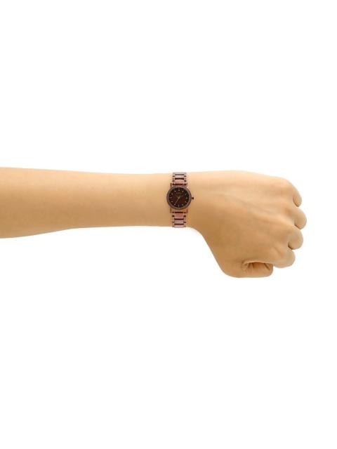 Dial style: Copper-toned dial with stone-studded markings and three hands to mark hours, minutes and seconds