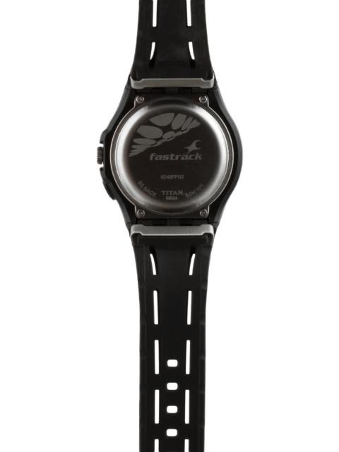 Strap style: Black resin strap with a tang closure, holes for a customised fit