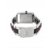 Case style: Analogue watch with a rectangular case with cut-out detail, stainless steel back