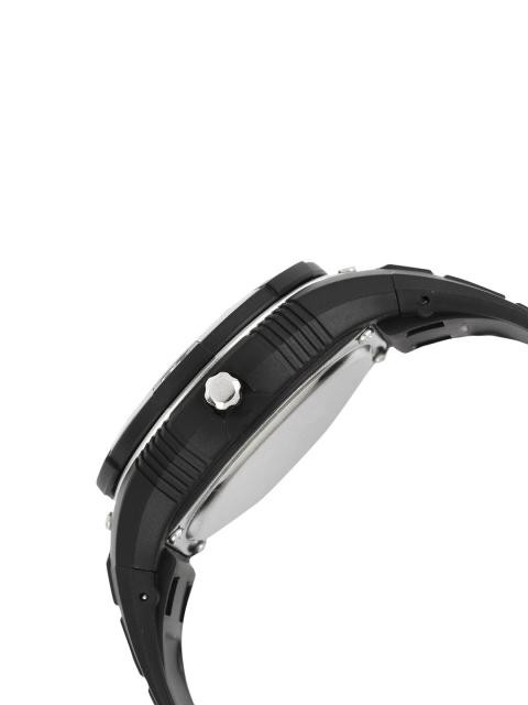 Case style: Analogue watch with a circular case and stainless steel back, has a rotating bezel with markings