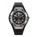 Strap style: Black synthetic strap with a tang clasp and a loop to hold the strap in place