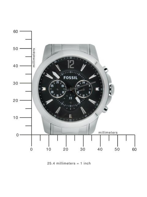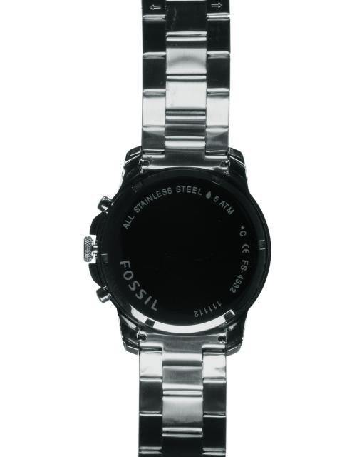 Case style: Analogue watch with a circular case and a fixed bezel and a stainless steel back