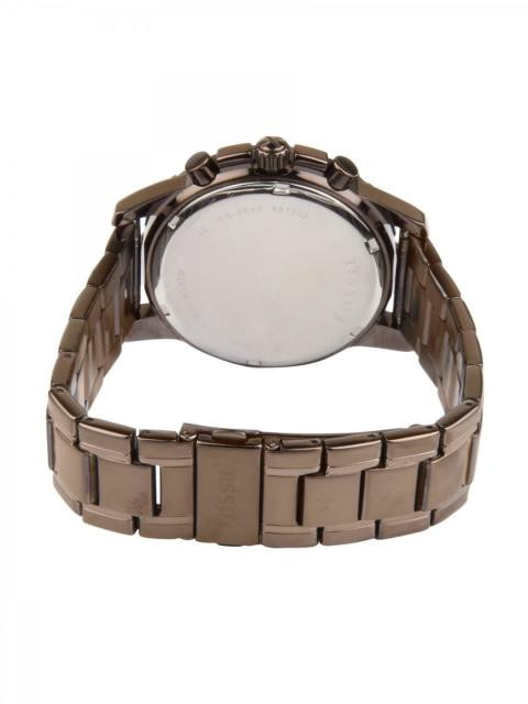 Strap style: Brown steel strap, secured with a butterfly clasp