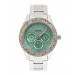 Case style: Analogue watch with a circular case with embellishments and a stainless steel back