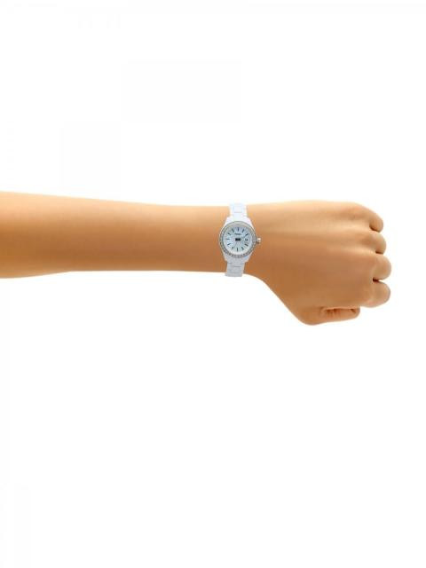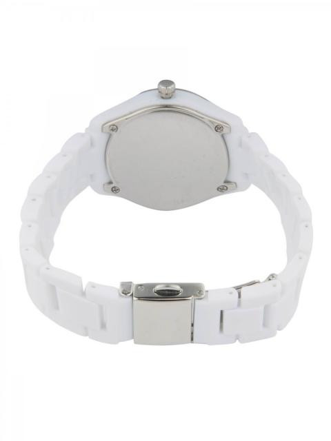 Case style: Analogue watch, has a circular case with a crystal embellished fixed bezel and a stainless steel back