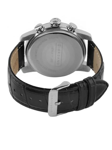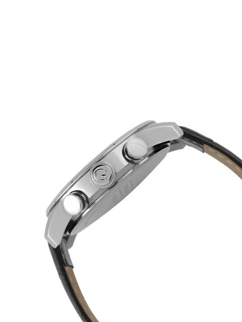 Dial style: Black dial with textured patterns, metallic hands with white accents, circular display of minute markings on the dial and branding on the 60 minute mark