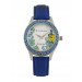Case style: Stainless steel round case for enhanced durability, double ring, blue crystal encrusted, fixed bezel for style