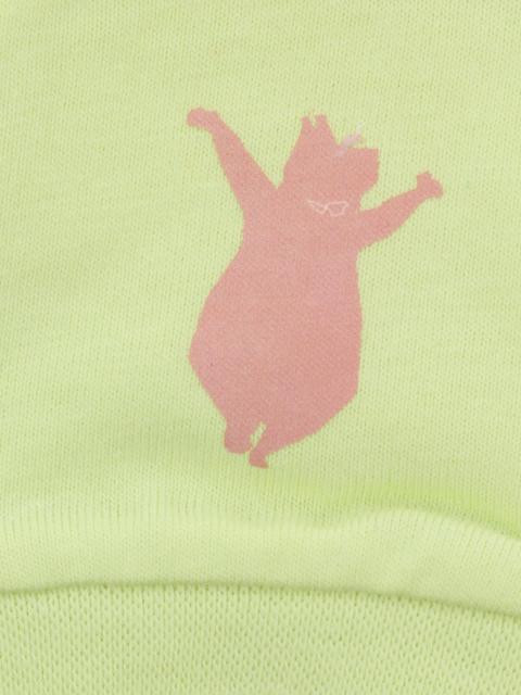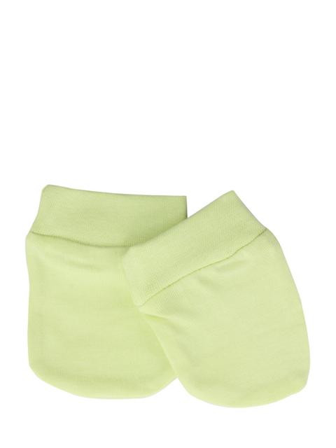Light green mittens with mildly elasticated cuffs and print on the upper palm region