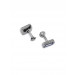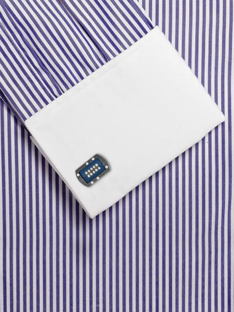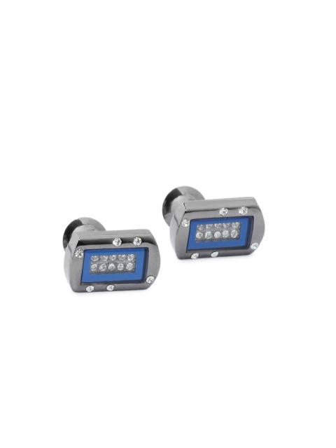Gunmetal and blue coloured pair of cuff-links, rectangular with two ed sides, crystal detail